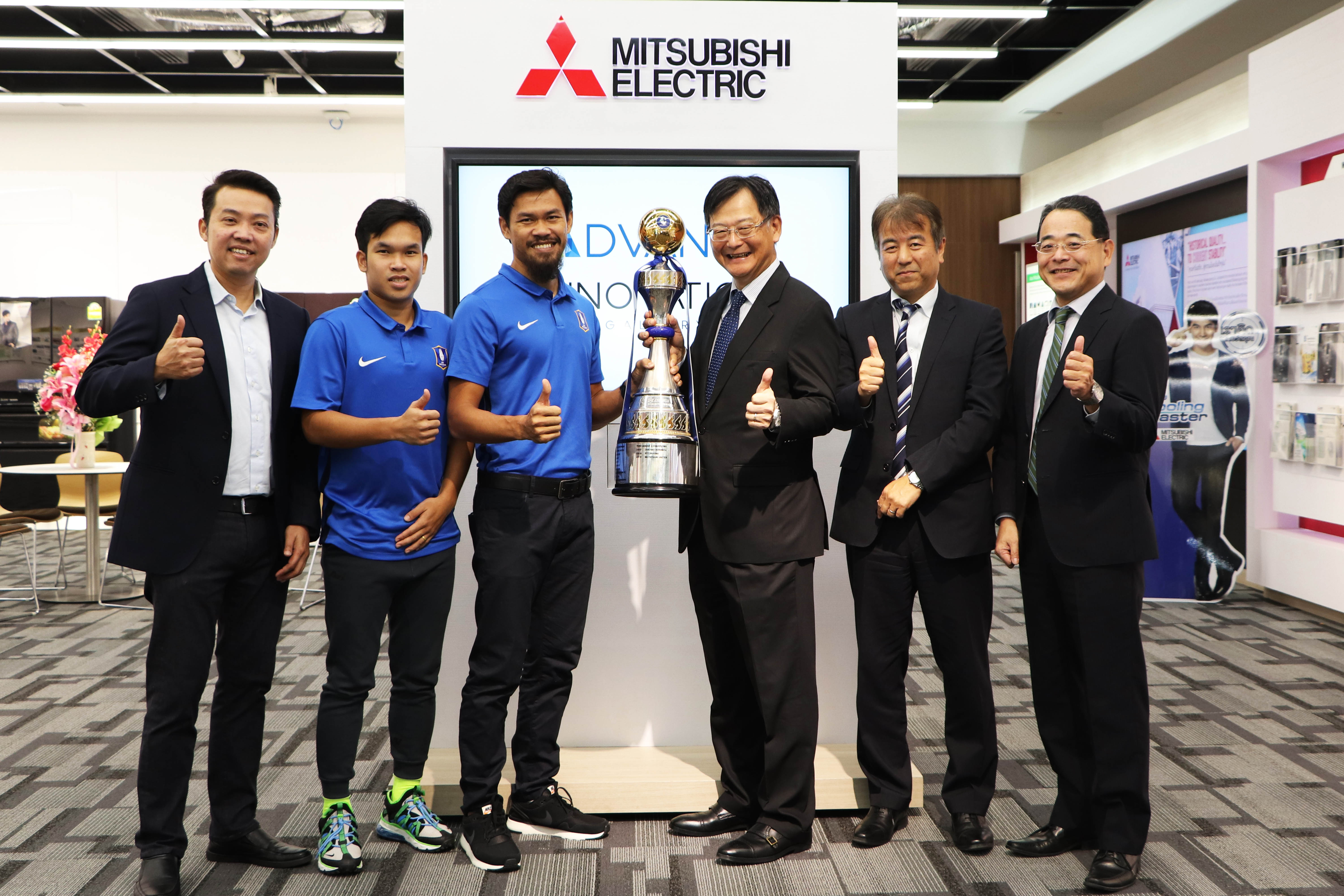 นายยาซุชิ โมริยามะ กรรมการผู้จัดการ พร้อมคณะผู้บริหาร บริษัท มิตซูบิชิ อีเล็คทริค กันยงวัฒนา จำกัด ในฐานะผู้ร่วมสนับสนุนสโมสรฟุตบอล บีจี ปทุม ยูไนเต็ด (BGPU) ร่วมสัมผัสถ้วยแชมป์และแสดงความยินดีในโอกาสคว้าแชมป์จากรายการ M-150 แชมเปี้ยนชิพ 2019 ได้สำเร็จ โดยมีนายวรเดช กฤตยาเกียรณ รองกรรมการผู้จัดการ สายงานการตลาด และการสื่อสาร BGPU พร้อมด้วยนายสุรชาติ สารีพิมพ์ กัปตันทีม และ ศิวกร แสงวงศ์ เข้าร่วมขอบคุณในฐานะหนึ่งในผู้สนับสนุน เมื่อเร็วๆ นี้